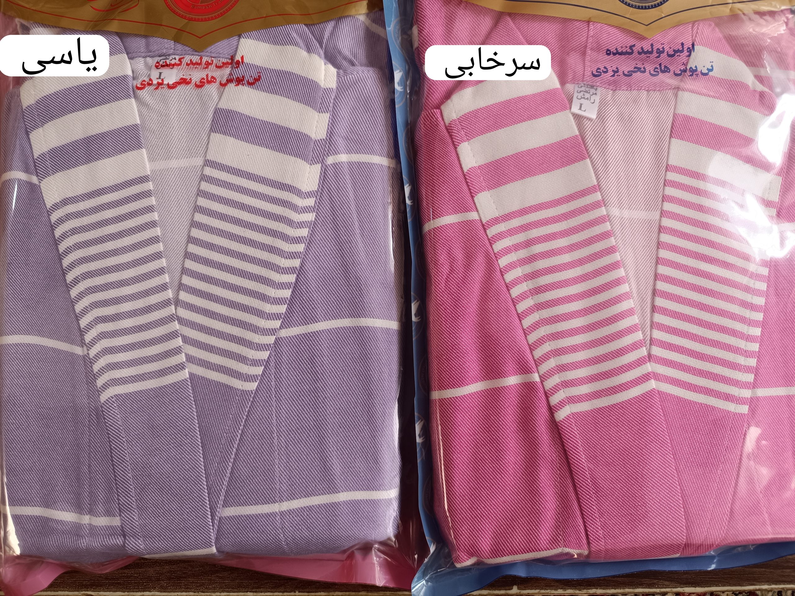 | رنگ | سفید با خط آبی تیره, گلبهی با خط بنفش, آبی آسمونی, زرد پرتقالی, زرد پرتقالی با خط بنفش, زرد پرتقالی با خط سفید, زرد تیره با خط بنفش, زرد تیره با خط سفید, زرد روشن, سبز پسته ای, سبز تیره, سبز سدری, سبز فیروزه ای, سبز کله غازی, سبز کله غازی ( سبز تیره), سبز یشمی, سرخابی ( صورتی پر رنگ ), سفید با خط آبی, عنابی, عنابی ( زرشکی), قرمز, مسی روشن, موکا ( نسکافه ای), هلویی, یاسی, آبی فیروزه ای, صورتی, آبی تیره, سفید, گلبهی, رنگین کمان, بنفش, زرد, طوسی |